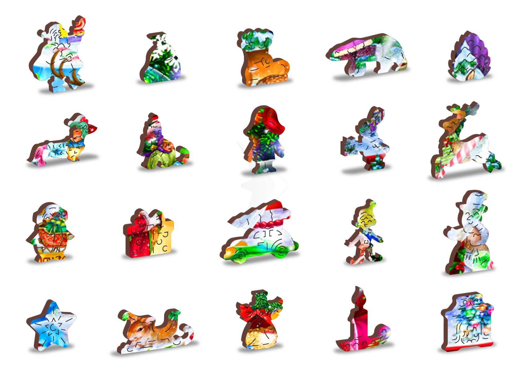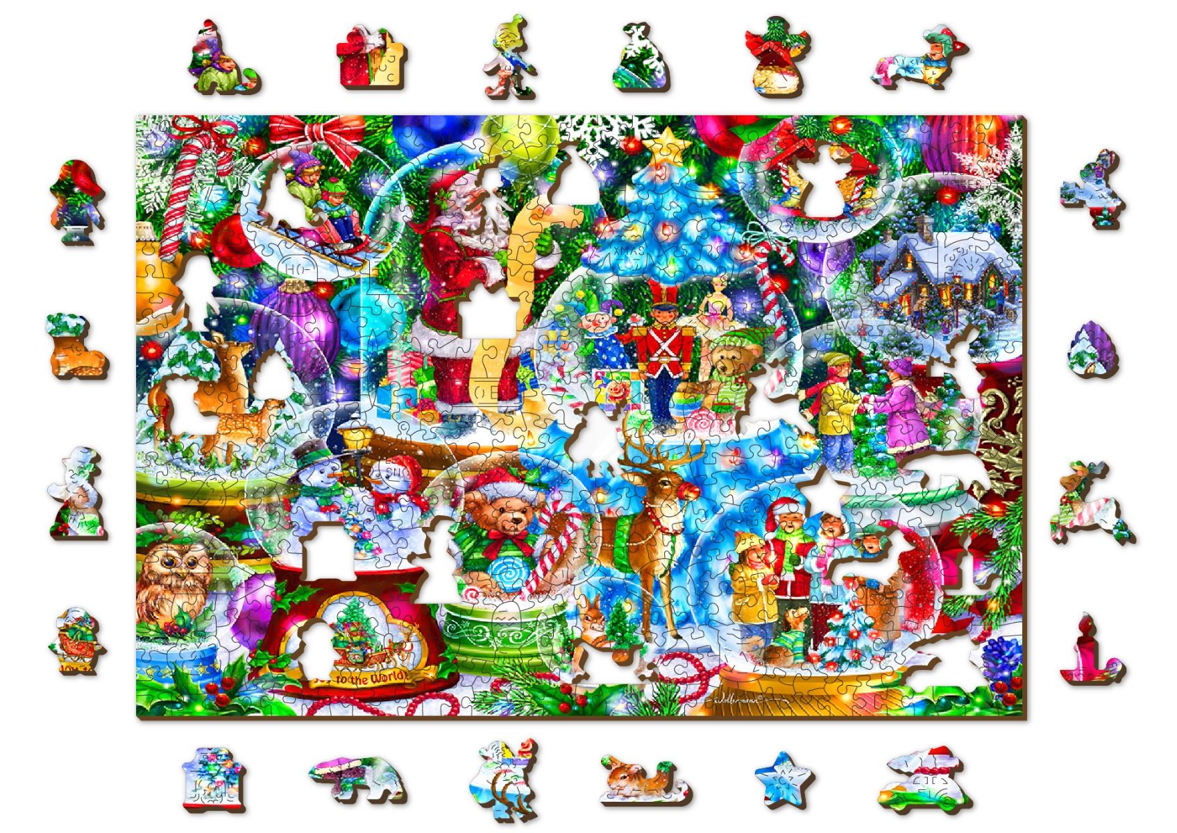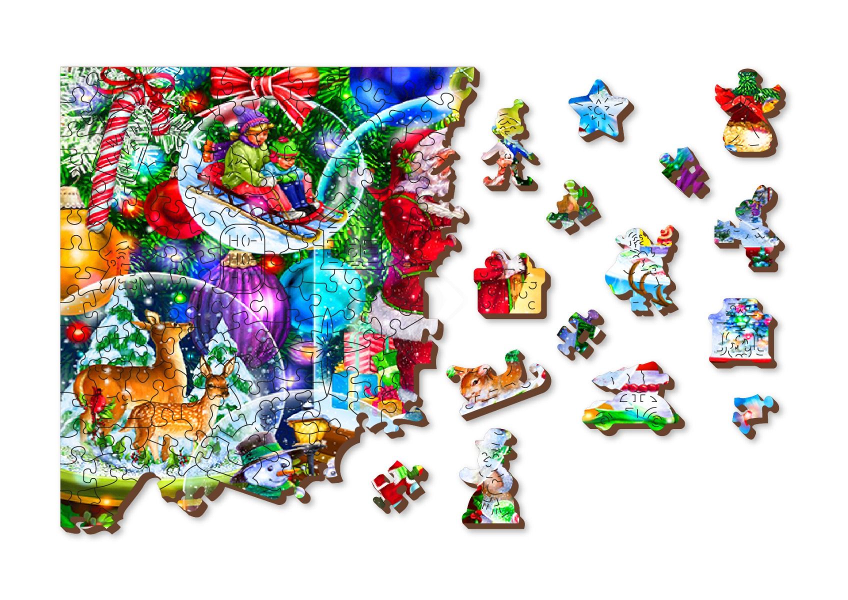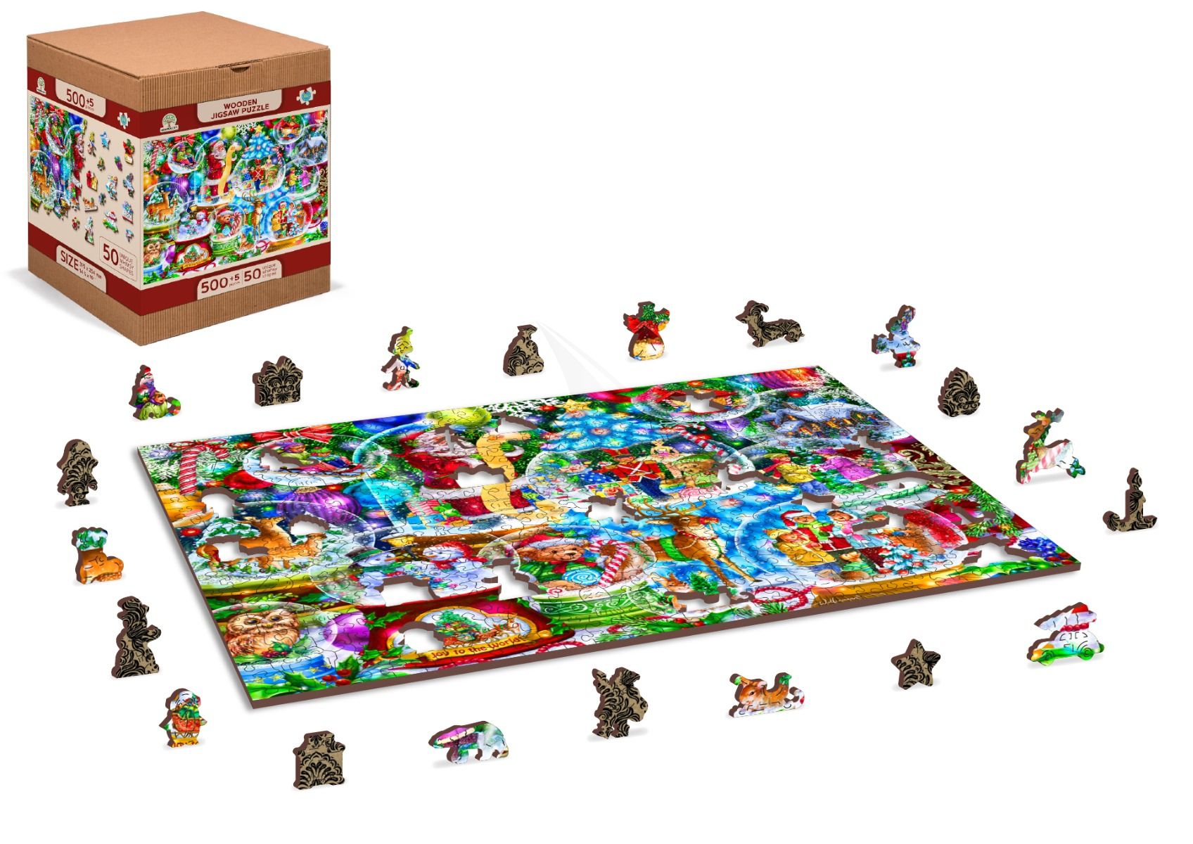 Puslespil med 500 brikker med stemningsfyldt julemotiv. Puslespillet er fremstillet i FSC certificerede materialer. Brikkerne er i træ, laserskårede med høj pasform. Udvalgte brikker er formet som dele af motivet eller relateret til motivet. Når man samler spillet kan motiv-brikkerne stilles på højkant. Puslespillet er produceret i bæredygtig proces i EU og ASTM D-4236 og EN71 godkendt. Ingen plast. Ingen film.