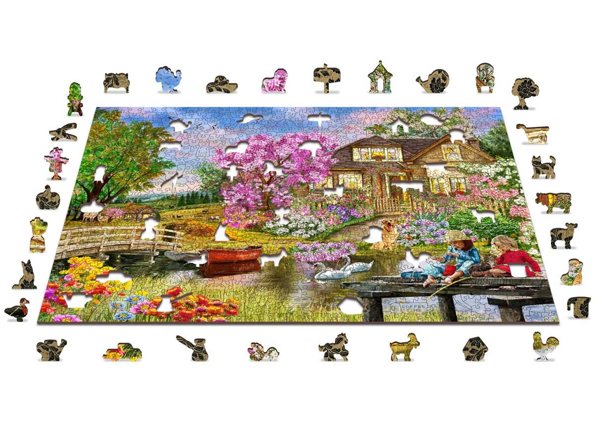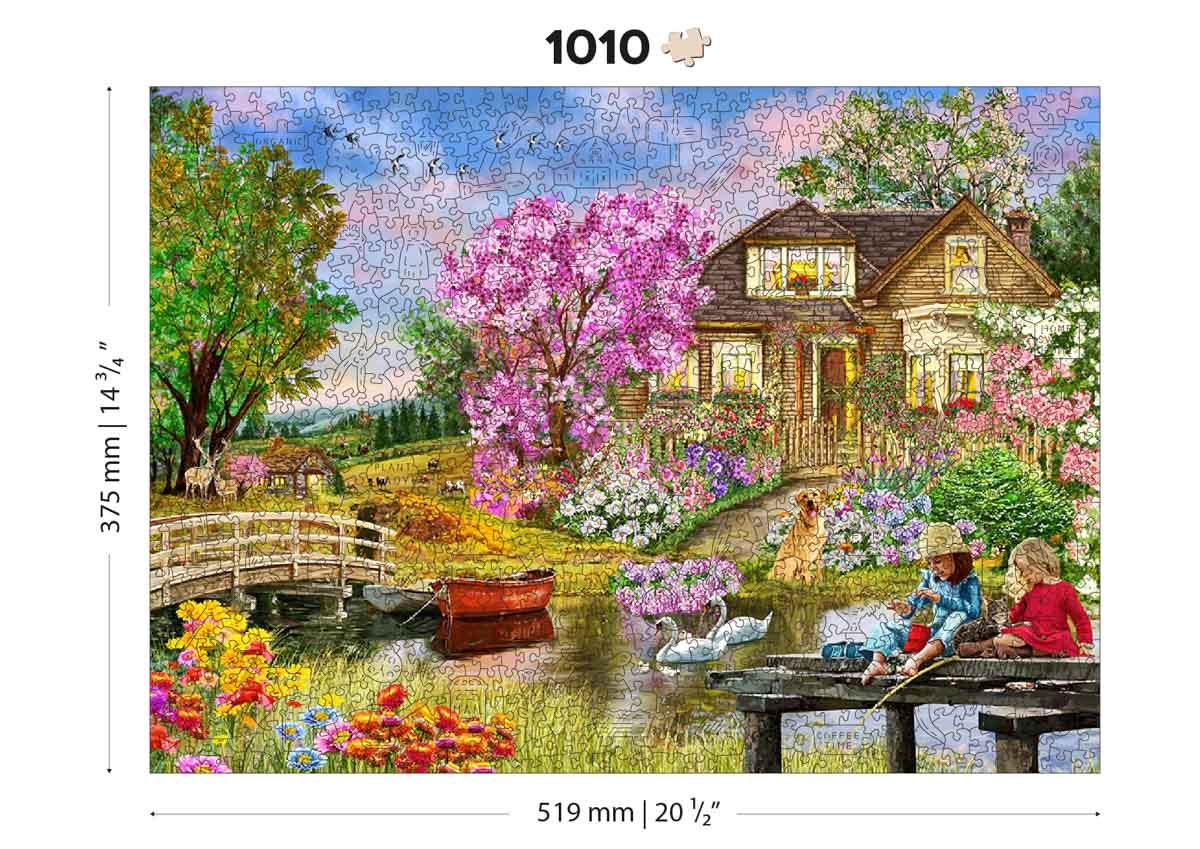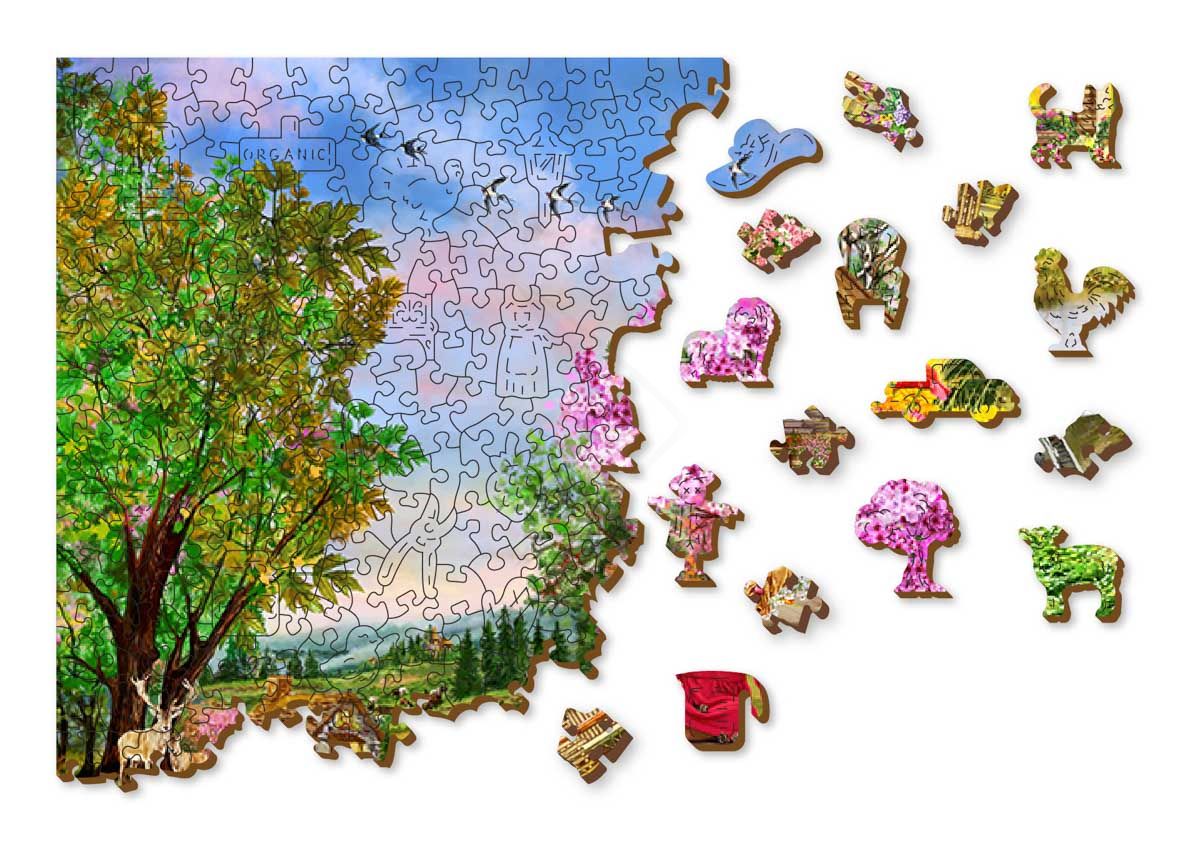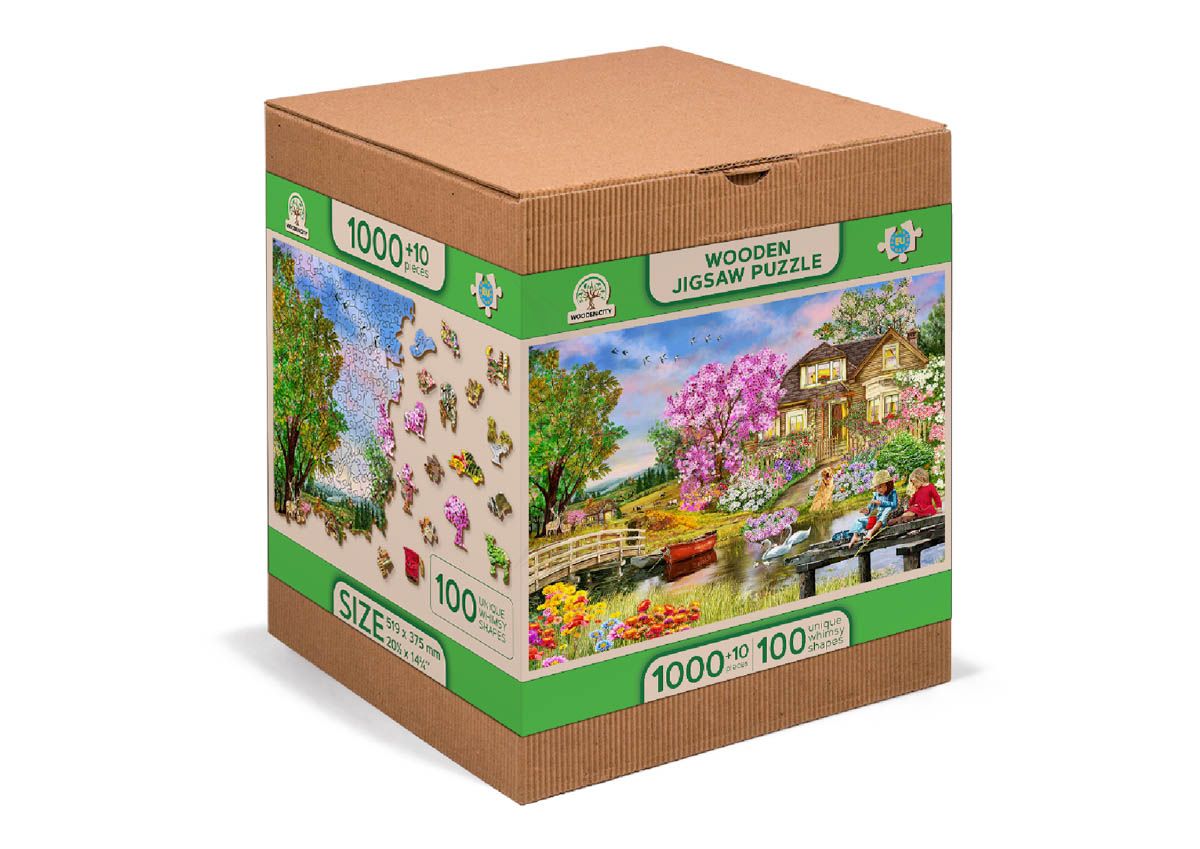 Puslespil med 1000 brikker. Puslespillet er fremstillet i FSC certificerede materialer. Brikkerne er i træ, laserskårede med høj pasform. Udvalgte brikker er formet som dele af motivet eller relateret til motivet. Når man samler spillet kan motiv-brikkerne stilles på højkant. Puslespillet er produceret i bæredygtig proces i EU og ASTM D-4236 og EN71 godkendt. Kubeformet emballage til opbevaring. Ingen plast. Ingen film.